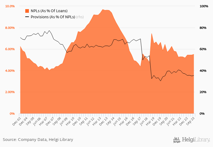 Provision coverage amounted to 35.4% at the end of 2023-09-30, down from 37.0% compared to a year earlier.