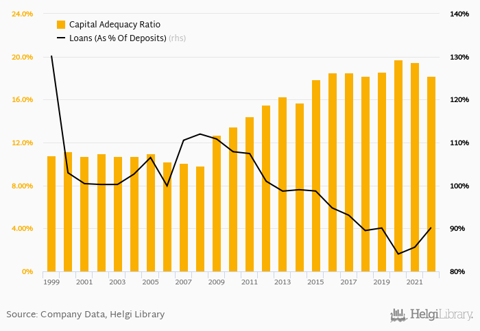 Bank's loan to deposit ratio reached 90.2% at the end of 2022, up from 85.6% when compared to the previous year. Some 10 years ago, loan to deposit ratio of the bank amounted to 101%.