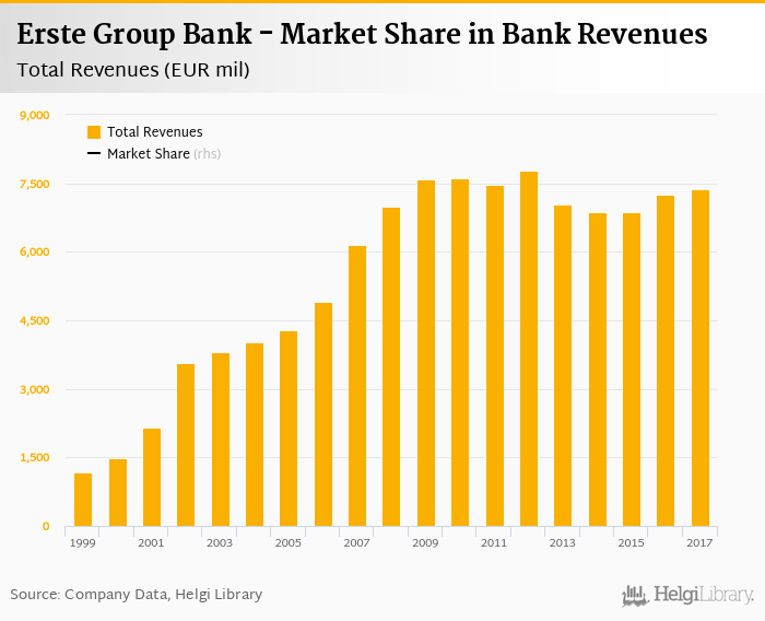 As a result, Erste Group Bank accounted for of all bank revenues generated by banks in Austria in. Historically, the bank’s market share in total revenues reached an all time high of % in and an all time low of % in.