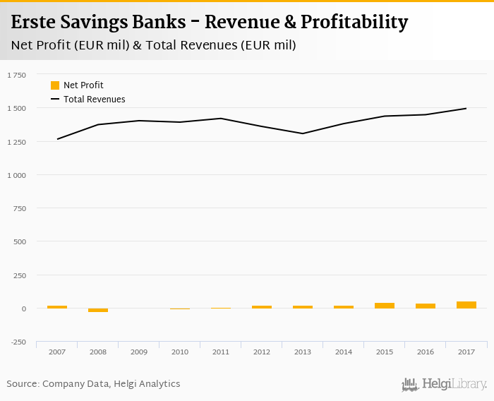 Erste Savings Banks made a net profit of EUR 51.9 mil under revenues of EUR 1,493 mil in 2017, up 52.4% and 3.24% respectively compared to the previous year.