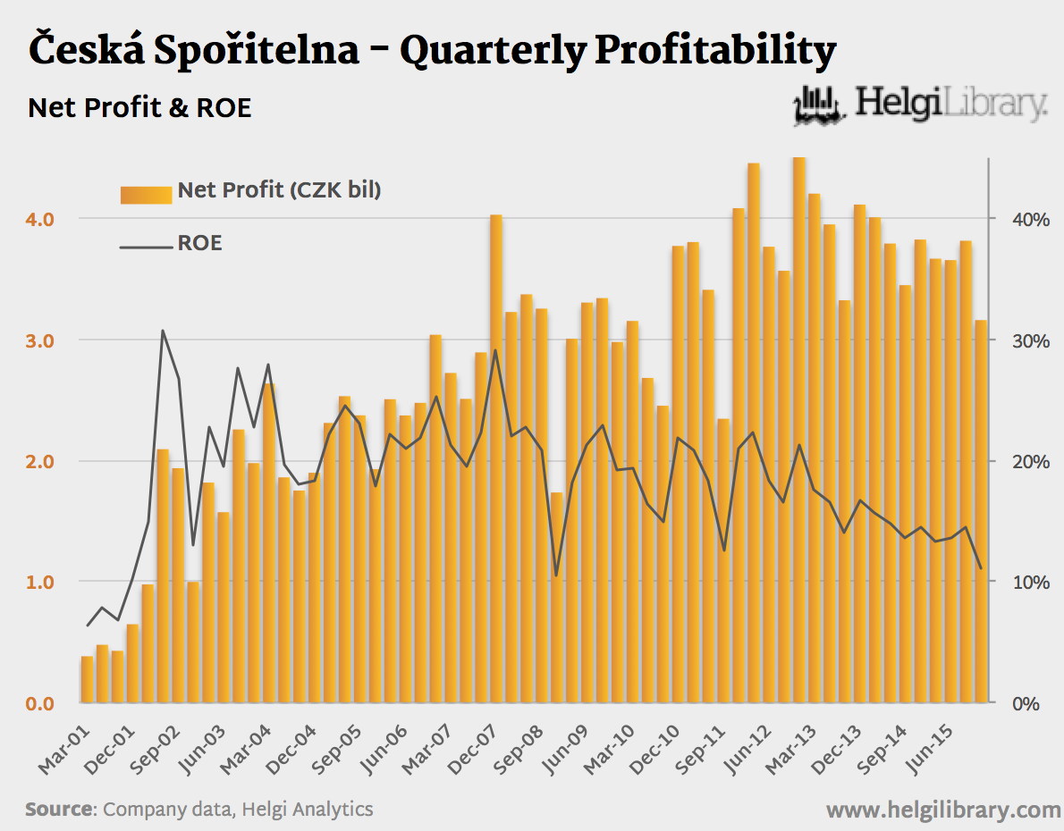 Česká Spořitelna - Quarterly Profitability (Mar01-Dec15)