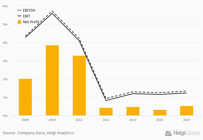 On the operating level, the EBITDA margin reached 1.33% and EBIT amounted to 1.23% of sales in 2015.