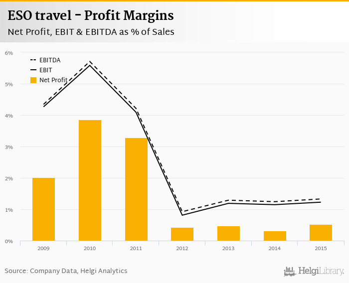 ESO travel made a net profit of CZK 2.35 mil with revenues of CZK 454 mil in 2015, up by 51.7% and down by 7.48%, respectively, compared to the previous year.