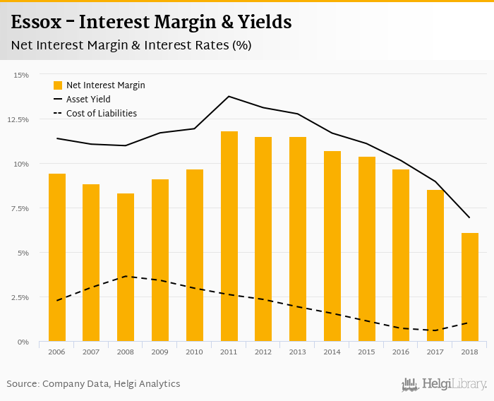 Essox's net interest margin amounted to 6.12% in 2018, down from 8.54% compared to the previous year.