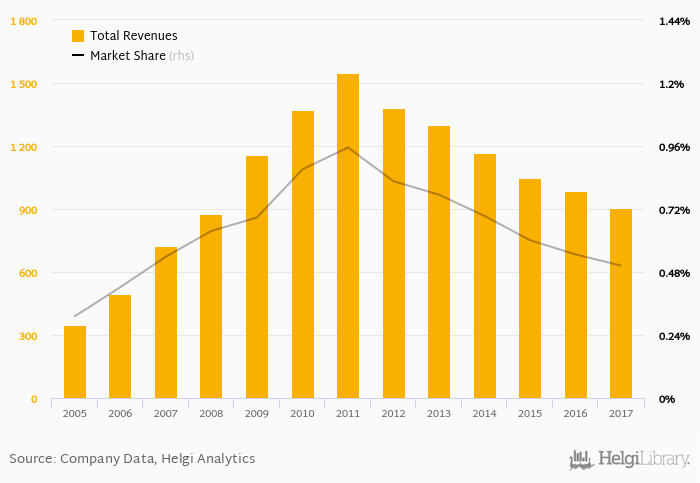 As a result, Essox accounted for 0.504% of all bank revenues generated by banks in Czechia in 2017. Historically, the bank’s market share in total revenues reached an all time high of 0.954% in 2011 and an all time low of 0.311% in 2005.