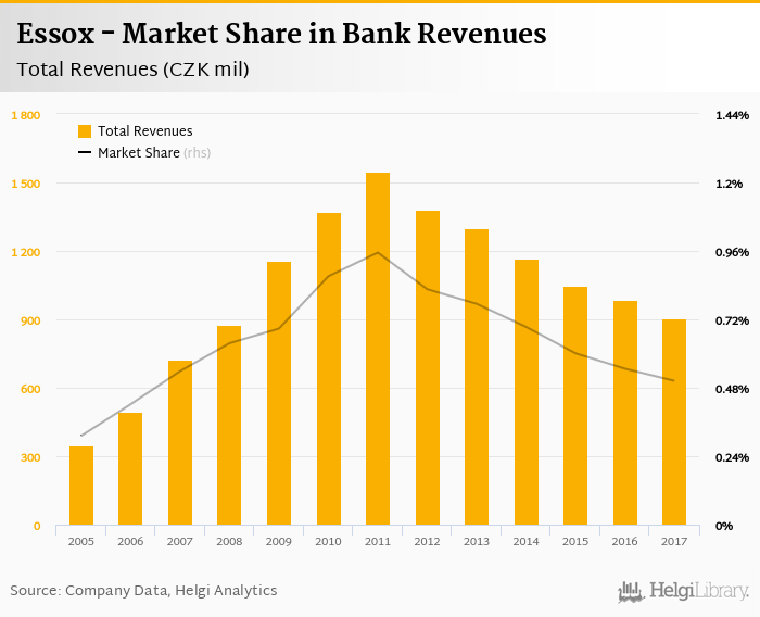 Essox generated total banking revenues of CZK 903 mil in 2017, down 8.34% compared to the previous year.