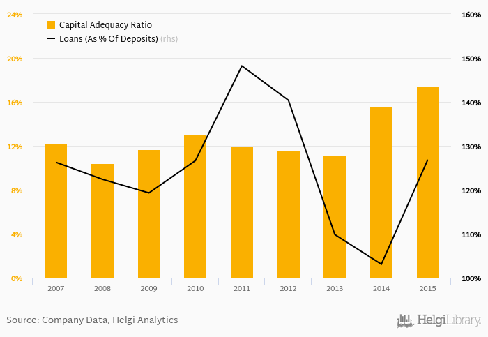 Bank's loan to deposit ratio reached 127% at the end of 2015, up from 103% when compared to the previous year.