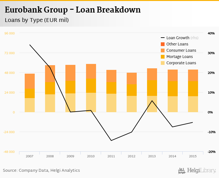 At the end of 2015, Eurobank Group's loans accounted for 127% of total deposits and 54.2% of total assets.