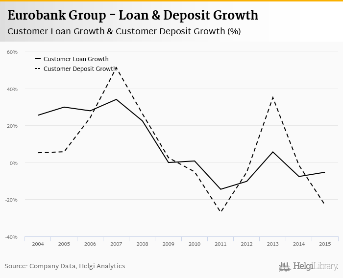 On the other hand, bank's customer deposit growth amounted to -23.1% at the end of 2015, down from -1.58% when compared to the previous year. Historically, the bank’s deposit growth reached an all time high of 51.2% in 2007 and an all time low of -27.0% in 2011. In the last decade, the average annual loan growth amounted to 5.03%.