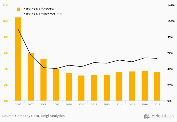 When compared to total assets, bank's cost amounted to 3.63% in 2017, down from 3.76% a year earlier.