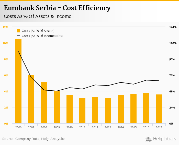 Eurobank Serbia's cost to income ratio reached 63.6% in 2017, down from 64.4% compared to the previous year.