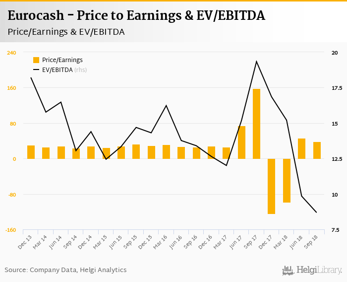 Eurocash stock traded at EUR 18.1 per share at the end 3Q2018 translating into a market capitalization of USD 685 mil.