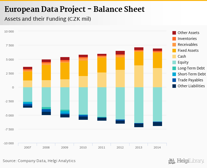 European Data Project's total assets reached CZK 6,918 mil at the end of 2014, down 3.28% compared to the previous year.