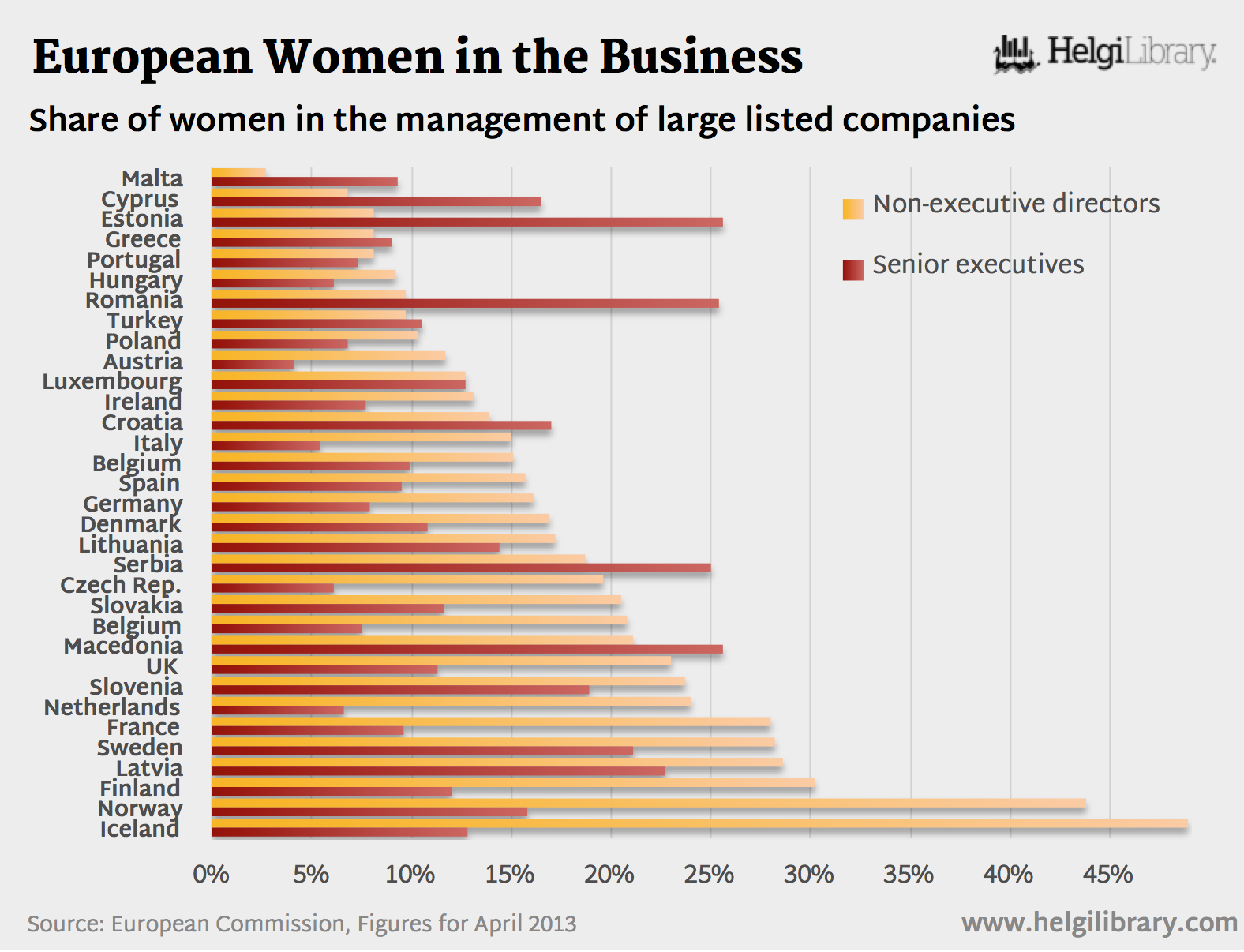 A recent report by the International Labour Organization (ILO) reveals women hold 50% of middle management positions. But that is as far as equality extends, as less than 5% of chief executives of publicly listed companies in OECD countries are women and just 2.8% in the European Union.