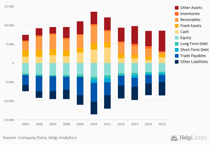 Net debt against equity is up 0.273 pp from five years ago (-0.540). The ratio against EBITDA increased from -1.70x seen in 2010 to 53.0x.