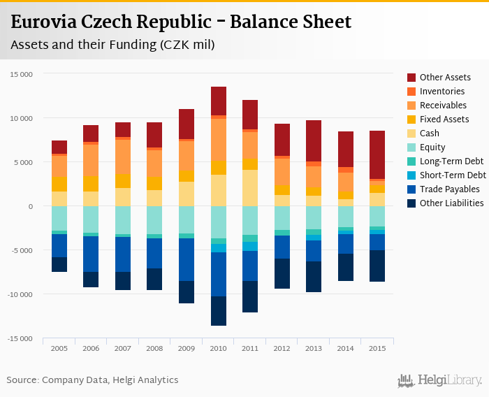Current assets amounted to CZK 6,202 mil, or 72.5% of total assets while cash stood at CZK 1,495 mil at the end of 2015.