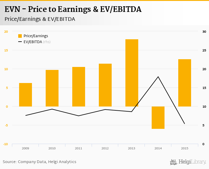 EVN stock traded at EUR 10.5 per share at the end 2015 translating into a market capitalization of USD 2,261 mil.