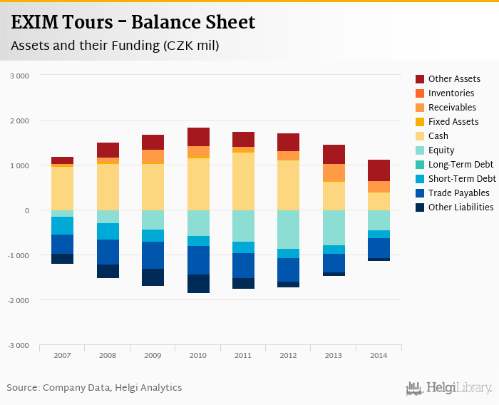 EXIM Tours's total assets reached CZK 1,129 mil at the end of 2014, down 22.8% compared to the previous year.