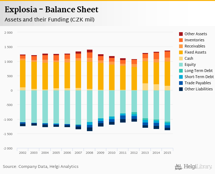 Explosia's total assets reached CZK 1,373 mil at the end of 2015, up 2.99% compared to the previous year.