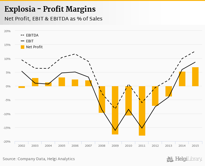 Explosia made a net profit of CZK 56.4 mil with revenues of CZK 825 mil in 2015, up by 33.4% and up by 2.84%, respectively, compared to the previous year.