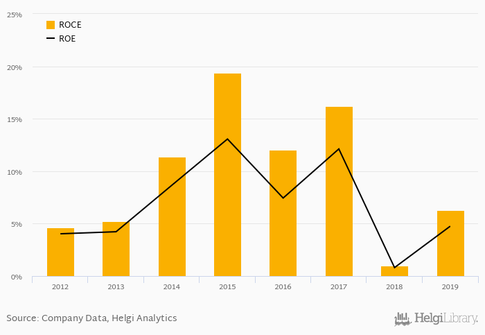 The result implies a return on equity of 4.75% and a return on invested capital of 6.29% in 2019. That is compared to an average of 7.64% and 11.0% over the last five years.