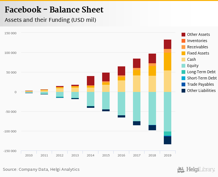 Facebook's total assets reached USD 133,376 mil at the end of 2019, up 37% compared to the previous year.