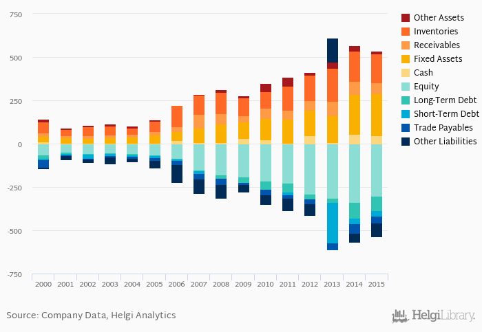Net debt against equity is up 0.102 pp from five years ago (0.123). The ratio against EBITDA increased from 0.545x seen in 2010 to 18.7x.