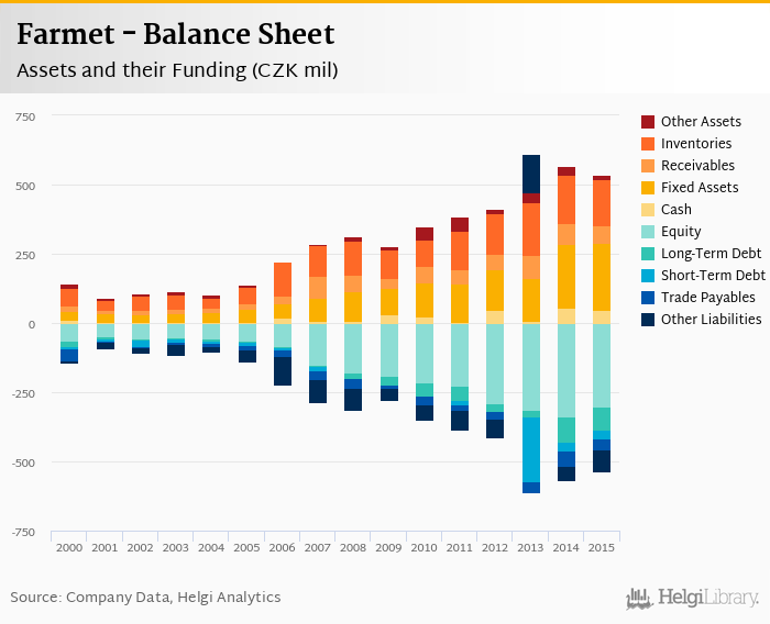 Farmet's total assets reached CZK 536 mil at the end of 2015, down 5.53% compared to the previous year.