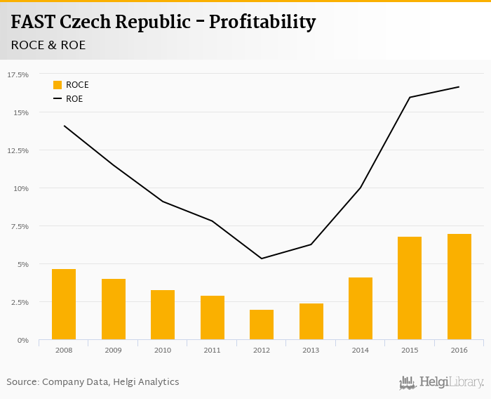As far as FAST Czech Republic's peers are concerned, Alza.cz generated ROE of 98.8% and ROCE of 45.1% in 2016. T.S.Bohemia's profitability reached 52.7% and -778%, respectively. OKAY operated with 16.3% and 169% returns in 2016.