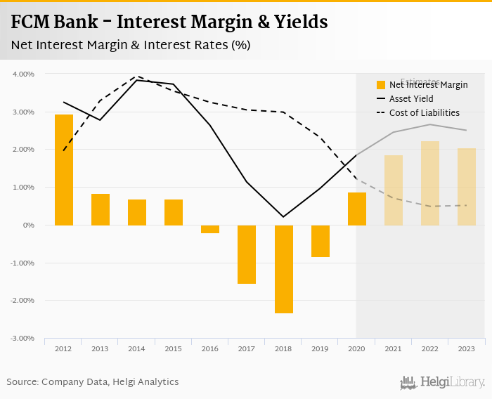 Historically, the bank’s net interest margin reached an all time high of 2.93% in 2012 and an all time low of -2.32% in 2018. The average margin in the last five years amounted to 1.23%.