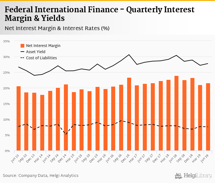 Federal International Finance's net interest margin amounted to 21.6% in the second quarter of 2019, up from 20.9% when compared to the previous quarter.