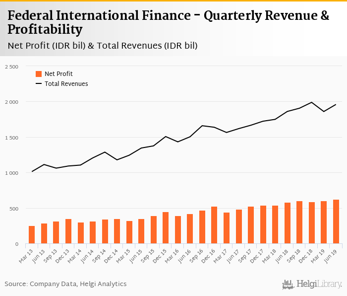 Federal International Finance made a net profit of IDR 624 bil under revenues of IDR 1,959 bil in the second quarter of 2019, up 7.94% and 5.32% respectively when compared to the same period last year.
