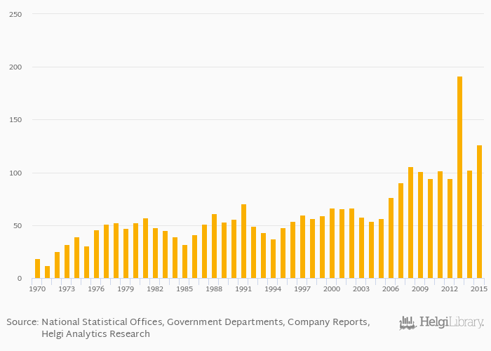 Historically, feldspar production in South Africa reached an all time high of 191 kt in 2013 and an all time low of 12.2 kt in 1971.