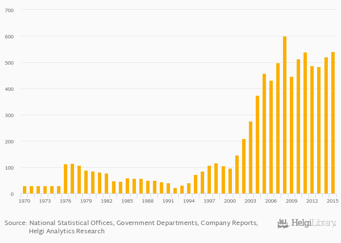 Feldspar production rose 3.84% to 540 kt in Poland in 2015, according to the National Statistical Office.