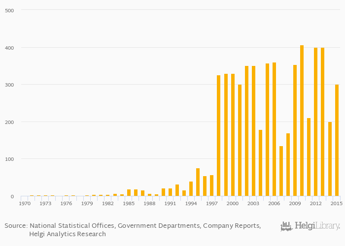 Feldspar production rose 50.0% to 300 kt in Egypt in 2015, according to the National Statistical Office.