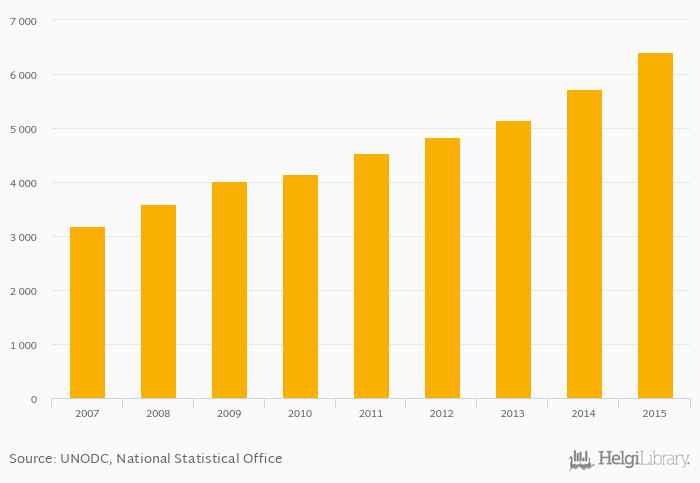 Historically, female adults held in prisons, penal or correctional institutions in Turkey reached an all time high of 6,403 persons in 2015 and an all time low of 3,179 persons in 2007.
