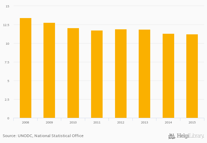 Historically, female police officers as a share of all police officers in Kosovo reached an all time high of 13.4% in 2008 and an all time low of 11.2% in 2015.