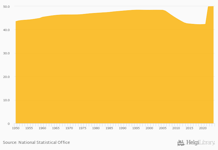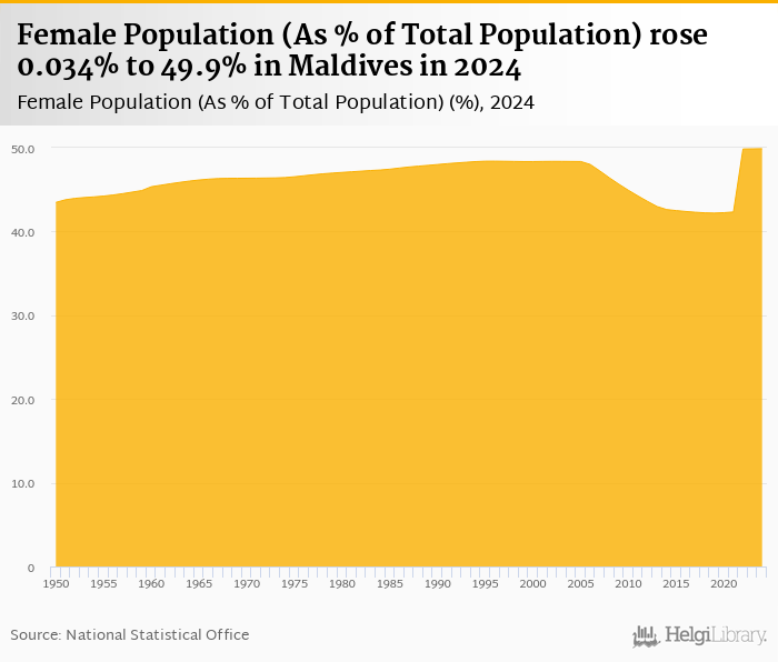 Female population as a percentage of total population rose 0.034% to 49.9% in Maldives in 2024, according to the National Statistical Office.