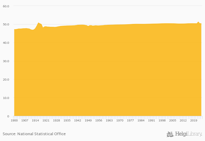 Historically, female population as a percentage of total population in Australia reached an all time high of 51.3% in 2022 and an all time low of 46.8% in 1912. When compared to Australia's main peers, female population as a percentage of total population in Indonesia amounted to 49.8%, 51.5% in Malaysia, 51.0% in New Zealand and 49.1% in Papua New Guinea in 2024.