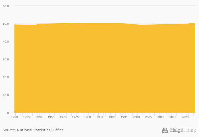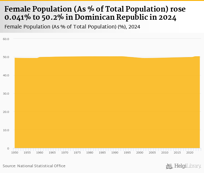 Female population as a percentage of total population rose 0.041% to 50.2% in Dominican Republic in 2024, according to the National Statistical Office.