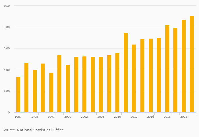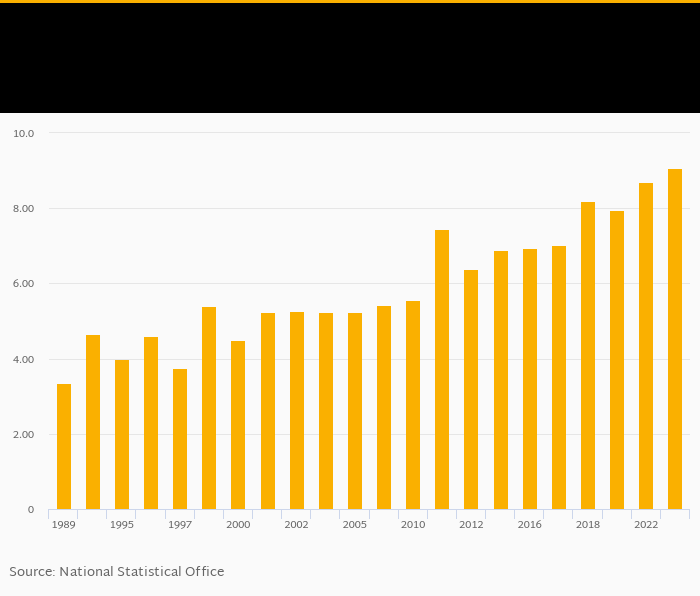 Female teachers in secondary education as a percentage of total rose 4.46% to 9.08% in Chad in 2023, according to World Bank.