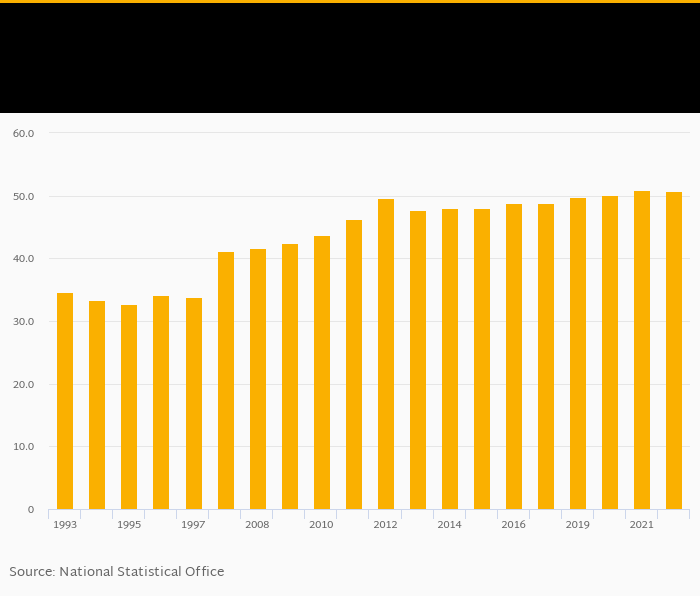 | Serbia | % | ... | ... | ... | ... | ... | 46.6% | 47.4% | 47.9% | 48.5% | 48.7% | |||||||||||