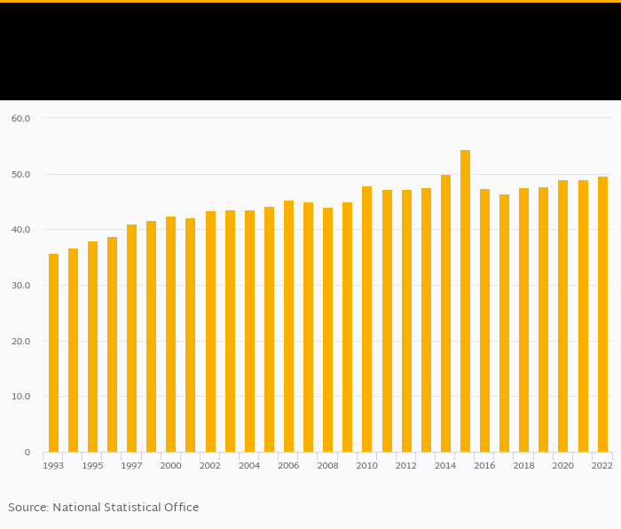 | Serbia | % | ... | ... | ... | ... | ... | 46.6% | 47.4% | 47.9% | 48.5% | 48.7% | |||||||||||