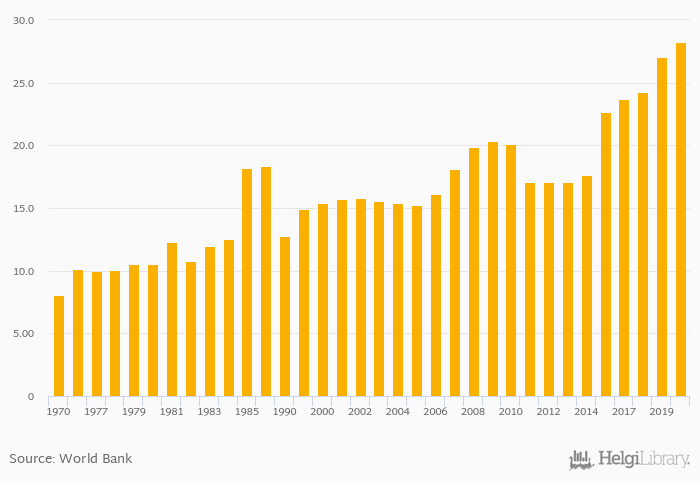| Bangladesh | % | ... | 24.2% | 27.1% | 28.3% | ... | 29.8% | |||||||||||||||