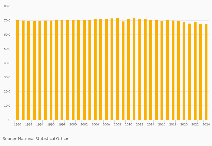 | Romania | % | 70.0% | 69.6% | 69.0% | 67.9% | 68.7% | ||||||||||||||||