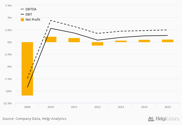 On the operating level, the EBITDA margin reached 2.45% and EBIT amounted to 1.31% of sales in 2015.