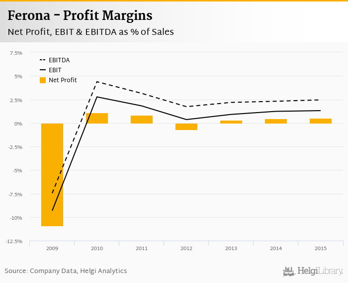Ferona made a net profit of CZK 104 mil with revenues of CZK 20,580 mil in 2015, up by 1.87% and down by 7.22%, respectively, compared to the previous year.