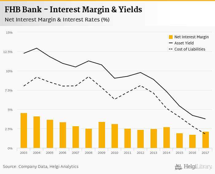 FHB Bank's net interest margin amounted to 2.13% in 2017, up from 1.76% compared to the previous year.
