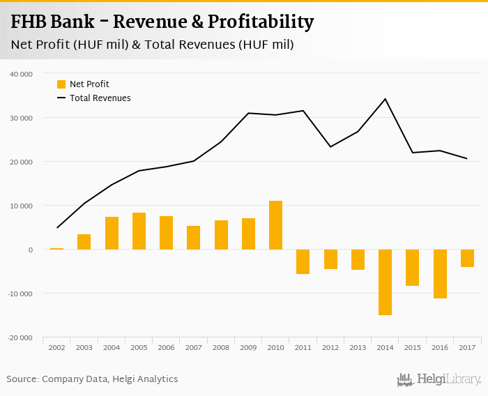 FHB Bank made a net profit of HUF -3,949 mil under revenues of HUF 20,533 mil in 2017, up 64.3% and -8.18% respectively compared to the previous year.