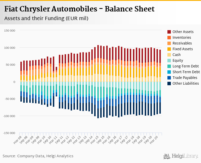 Fiat Chrysler Automobiles's total assets reached EUR 93,608 mil at the end of 2Q2020, down 5.59% compared to the previous year.